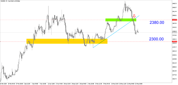 XAUUSD (H4). Broke the bullish trend line at the Support level of 2380.00. Gold is eyeing 2300.00, a psychological level for investors.