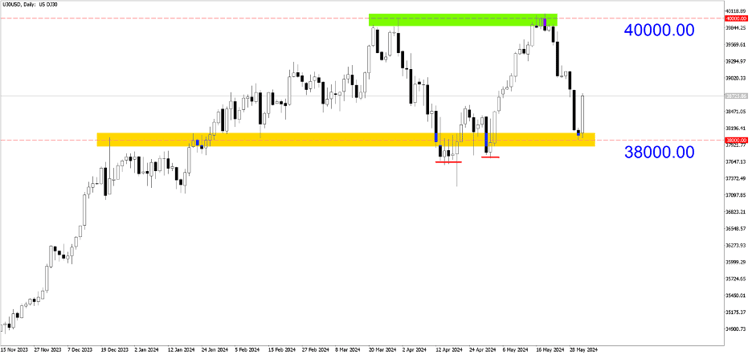 US30 (Daily). The Dow Jones hit a double top at its all-time high of 40,000.00. We are waiting for a correction at the psychological level of 38,000.00 for a better buying level in June.
