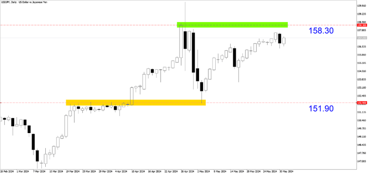 USDJPY (Daily). Despite government intervention, the pair's uptrend is still on track. The 158.30 will be the level to consider shorting this pair. As traders, we always align ourselves with the central bank’s intention.
