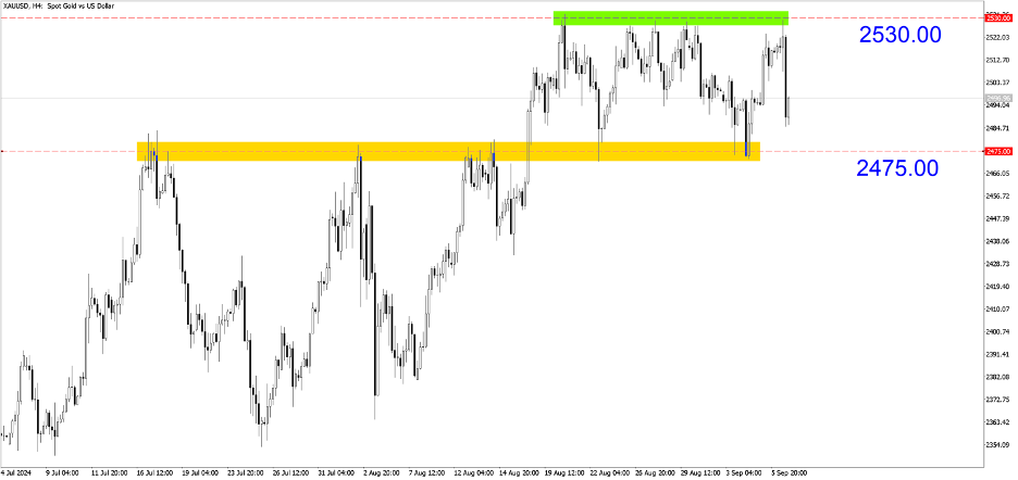 XAUUSD (H4). The price correction to 2475.00 last week has made a strong demand zone. Buyers are likely to wait for this level before re-entering the market. Watch for selling opportunities in the green zone and buying opportunities in the yellow zone.