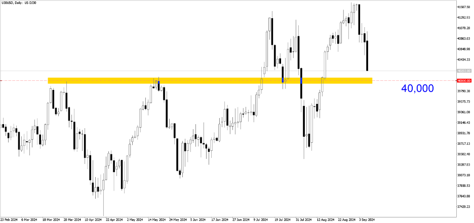 US30USD (Daily). The 40,000 level remains a key psychological and liquidity zone where institutions decide to enter the market. Retail buyers and sellers are in "wait and see" mode to confirm either a reversal or a breakout at this level.