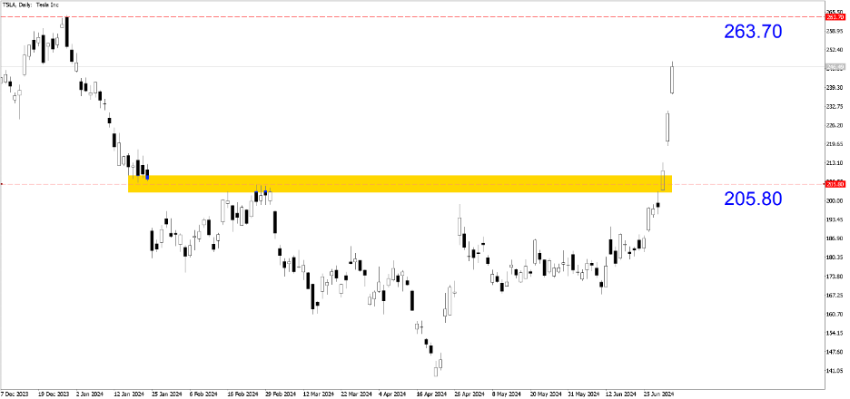 TSLA (Daily). Diremehkan oleh pembeli karena turun di bawah 140,00 atau hampir 50% dari level tertinggi 2024, saham mendapatkan kembali momentumnya tetapi terlalu cepat. Harga mungkin mencapai level 263,70 lagi, tetapi aksi ambil untung diperkirakan akan menghadirkan peluang untuk membeli dengan harga diskon.