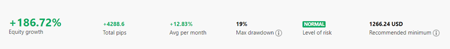 Tài khoản của SP này đã hoạt động được 8 tháng và 3 tuần. Tôi coi SP này như một nhà giao dịch rủi ro thấp khi xem xét mức âm trạng thái tối đa của họ chỉ là 19% so với lợi nhuận trung bình mỗi tháng của anh ấy là 12,83%.