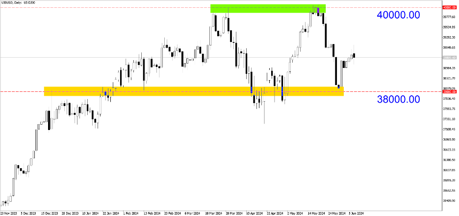 US30USD (Hàng ngày). Phục hồi trở lại từ vùng cầu vững chắc ở mức 38.000, chỉ số Dow Jones đang ở mức hỗ trợ và kháng cự trung bình trong khoảng thời gian 6 tháng qua. Tiềm năng mua vào khoảng 38.000 và bán khoảng 40.000.