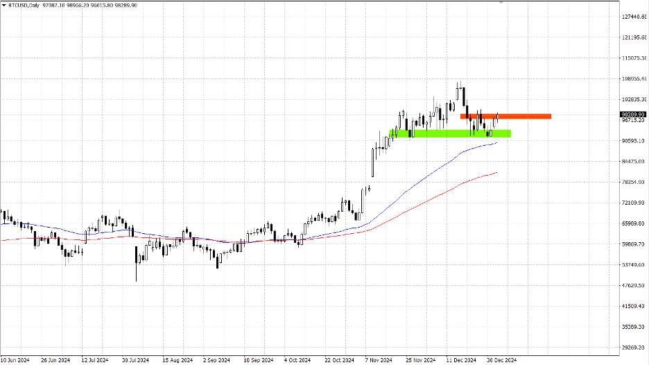 BTCUSD (Daily). Giá Bitcoin hiện đã thiết lập vùng hỗ trợ cứng 92,500 và đang kiểm tra lại vùng kháng cự tâm lý 98,500. Chờ đợi một thiết lập nén chặt chẽ trước khi giá phá vỡ vùng kháng cự 98,500 để đặt một vị thế mua hoàn hảo và hướng đến vùng kháng cự tiếp theo 102,500.