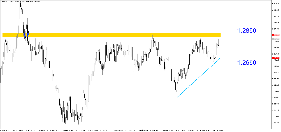 GBPUSD (Daily). Các nhà đầu tư coi chiến thắng của Đảng Lao động là điều tích cực đối với đồng bảng Anh. Cặp tiền này dự kiến sẽ hướng tới mức kháng cự 1,2850.