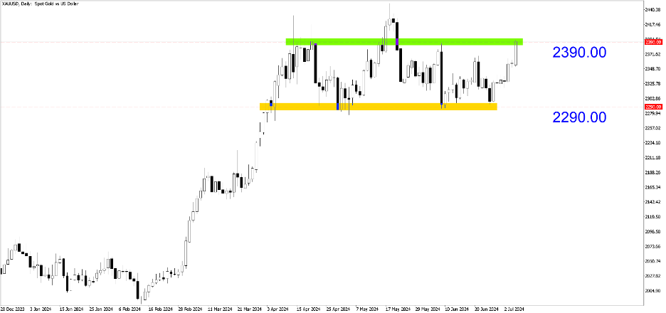 XAUUSD (Daily). Sau đợt phục hồi bắt đầu vào tháng 2, Vàng bắt đầu củng cố trong khoảng từ 2.290 đến 2.390, sau khi phá vỡ ngưỡng kháng cự một lần. Giá đang kiểm tra lại mức 2.390, nhưng thị trường cần tin rằng sẽ có nhiều đợt cắt giảm lãi suất hơn nữa để đẩy giá vượt mức cao nhất mọi thời đại là 2.450.