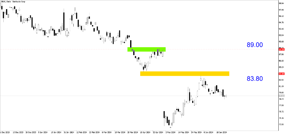 SBUX (Hàng ngày). Trải qua khoảng chênh lệch giảm 15% vào đầu tháng 5 do các hiệu ứng cơ bản, cổ phiếu này đang lấy đà trở lại. Starbucks dự kiến sẽ phá vỡ ngưỡng kháng cự 83,80 trước khi đạt mục tiêu đầu tiên là 89,00.