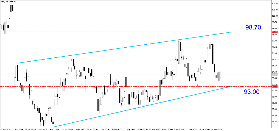 NKE (H4). Trải qua khoảng chênh lệch giảm 8% vào ngày 22 tháng 3, cổ phiếu này đang có được đà tăng tạm thời mặc dù vẫn chưa hồi phục từ mức đỉnh 179 USD trên mỗi cổ phiếu. Tận dụng lợi thế bằng cách mua vào khoảng 93,00 và chốt lời ở khoảng 98,70.