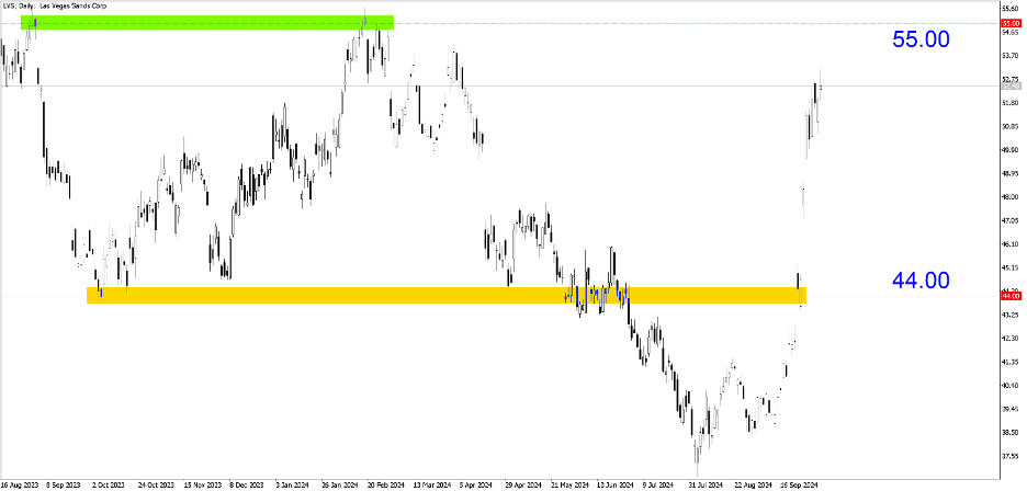 LVS (Daily). Sau khi vượt qua mức kháng cự tại 44,00, cổ phiếu đã nhanh chóng nhắm đến mức kháng cự cao hơn. Chúng tôi tin rằng giá có khả năng điều chỉnh quanh mức 55,00.