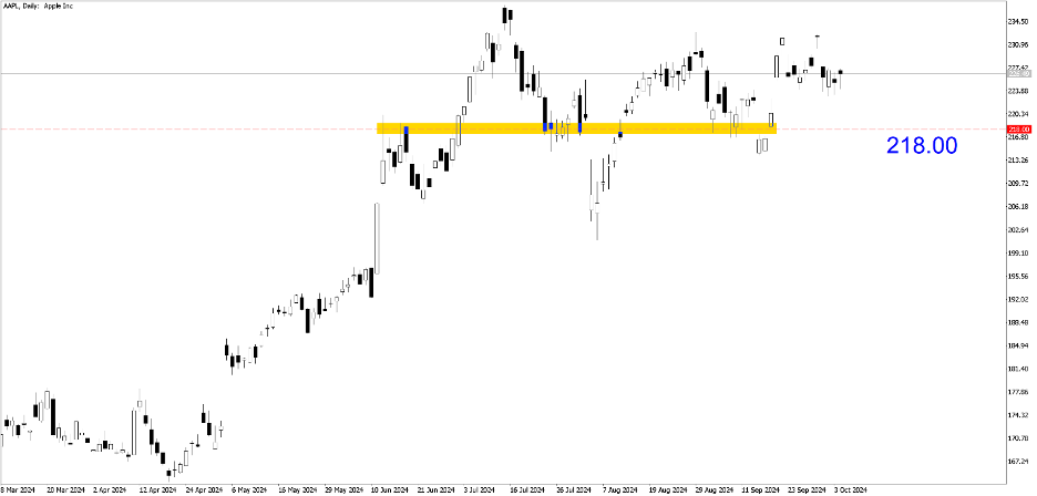 AAPL (Daily). Kể từ khi Apple đạt mức 218,00 vào tháng 6 năm 2024, mức giá này đã trở thành một ngưỡng cầu, với cổ phiếu chủ yếu giao dịch trên mức này. Chúng tôi khuyến nghị mua quanh mức đó và giữ lâu dài.