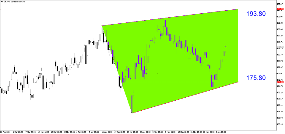 AMZN (H4). Dựa trên đường dự báo 3 tháng, mức mua của Amazon sẽ vào khoảng 175,80 và mục tiêu là khoảng 193,80. Chờ điều chỉnh để nhập giá giảm.
