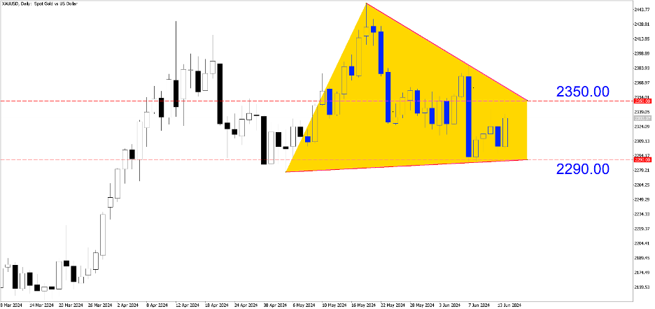 XAUUSD (Hàng ngày). Vàng giao dịch trong biên độ hẹp vào tuần trước. Chờ đợi những đột phá tiềm năng từ mô hình tam giác giảm dần vào khoảng 2350,00 (tăng) hoặc 2290,00 (giảm).